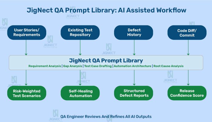 The QA Prompt Library model that Jignect developed internally is now a core part of how we deliver AI-driven quality engineering for clients. We do not just introduce AI capabilities. We work with client QA teams to build their own prompt libraries that capture their institutional knowledge in a form that is reusable, governable, and improvable over time. That library becomes the team’s long-term AI asset, independent of any specific tool or platform.