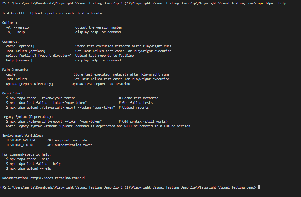 - TestDino provides a command-line tool called tdpw.