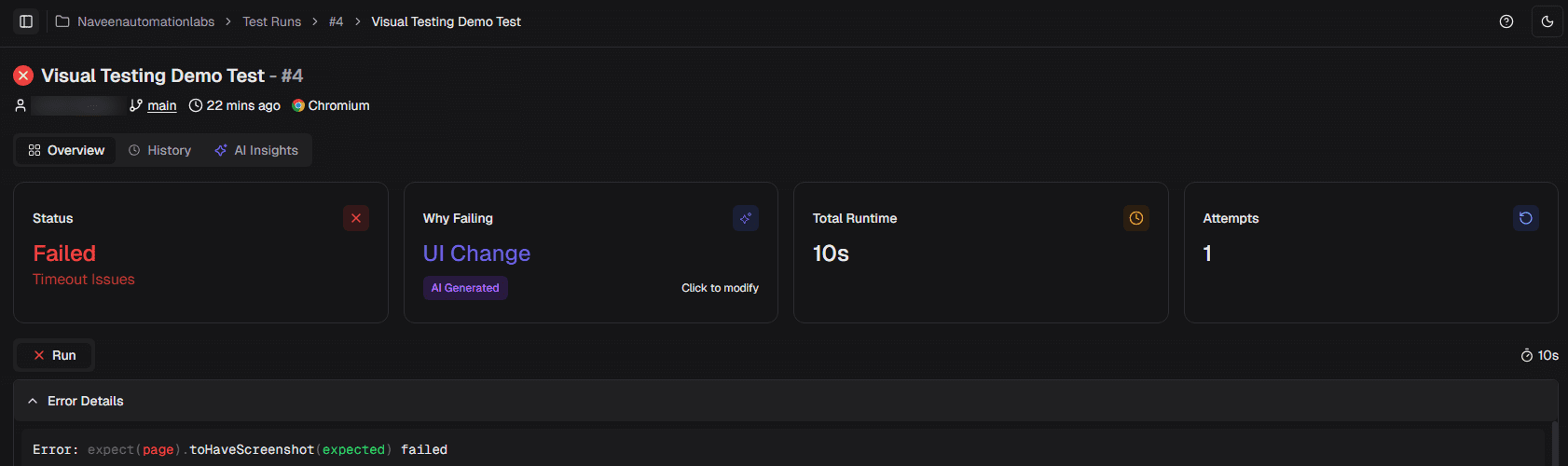 - Makes it easy to review failures visually without hunting in logs.